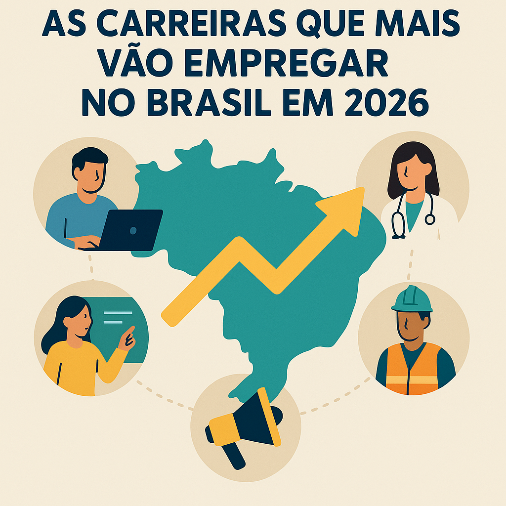 Exploramos as carreiras que mais devem crescer no Brasil em 2026 e mostramos como tecnologia, saúde, educação, sustentabilidade e profissões híbridas estão moldando o novo mercado de trabalho