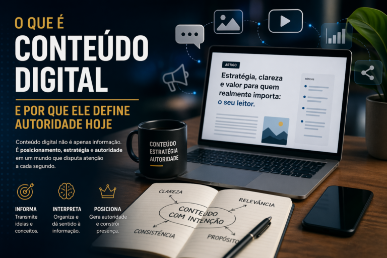Produzir conteúdo não garante autoridade. A construção de presença digital depende de consistência, clareza e organização das ideias ao longo do tempo.